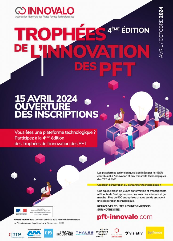 L’association PFT Innovalo avec le soutien de la Direction Générale de la Recherche et de l’Innovation du Ministère de l’Enseignement Supérieur, de la Recherche et de l’Innovation (DGRI), lance la 4ème édition de ces trophées de portée nationale pour valoriser les multiples réalisations des plateformes technologiques (PFT).